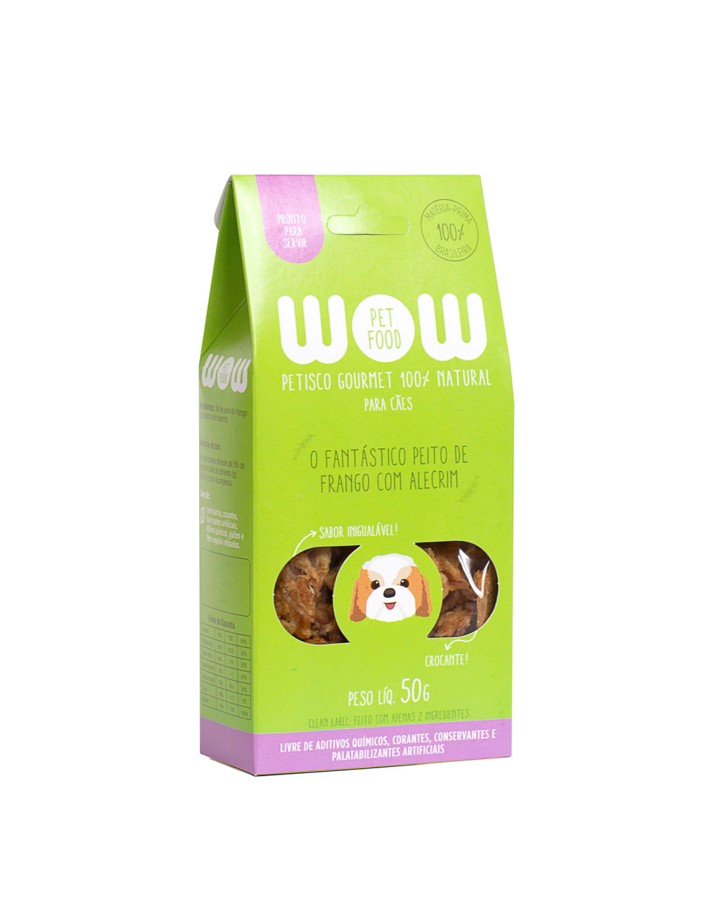 Perfeito para recompensar, treinar ou simplesmente mimar, o Petisco Desidratado WOW Fantástico Peito de Frango com Alecrim é a escolha certeira para quem busca um petisco natural, saboroso e saudável.