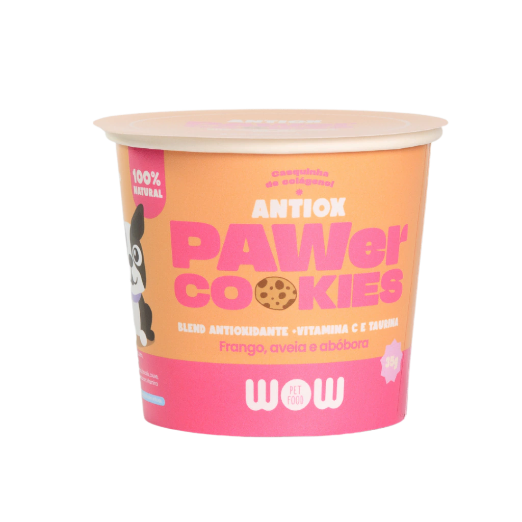 Os WOW Pawer Cookies ANTIOX de Frango, Aveia e Abóbora foram desenvolvidos para proporcionar mais saúde, bem-estar e felicidade para o seu doguinho. Com ingredientes funcionais e de alto valor nutricional, eles são uma opção saudável, nutritiva e deliciosa para incluir na rotina do seu pet.